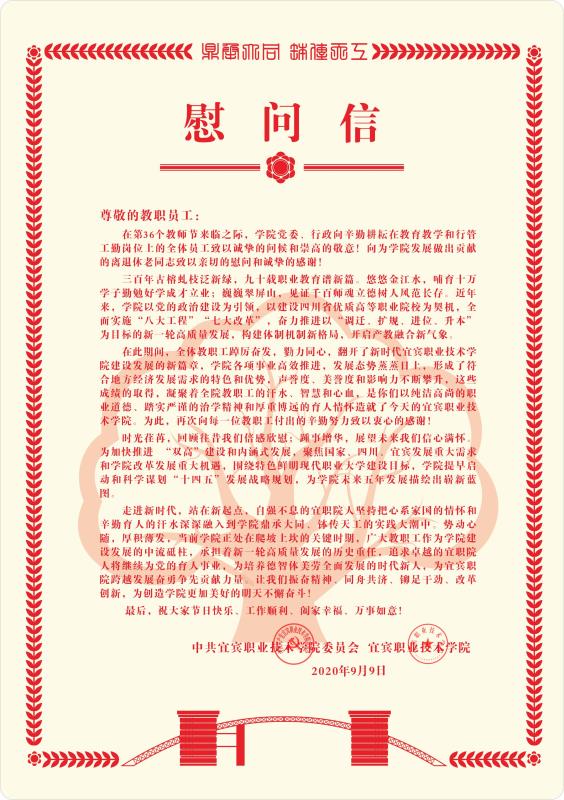 学院党委、行政致全体教职员工的一封慰问信