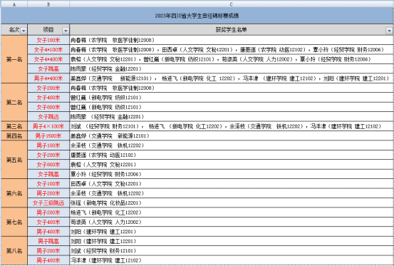 6月11日,由四川省教育厅主办、四川省大学生体育协会主办、西南石油大学承办的2023年四川省大学生田径比赛圆满落幕。来自全省76所高校的1200余名体育田径健儿,在为期2天的比赛中,参加高水平组、校园组、高职高专组多个项目的角逐。
