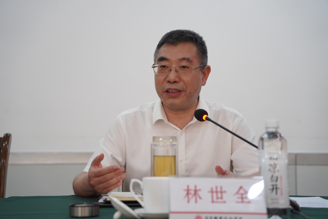 在考察调研座谈会上,林世全代表学院党政对王秀江一行表示欢迎,并简要介绍了我院基本情况。双方就高职园规划、建设、管理以及产教融合发展等主题展开了热烈讨论。