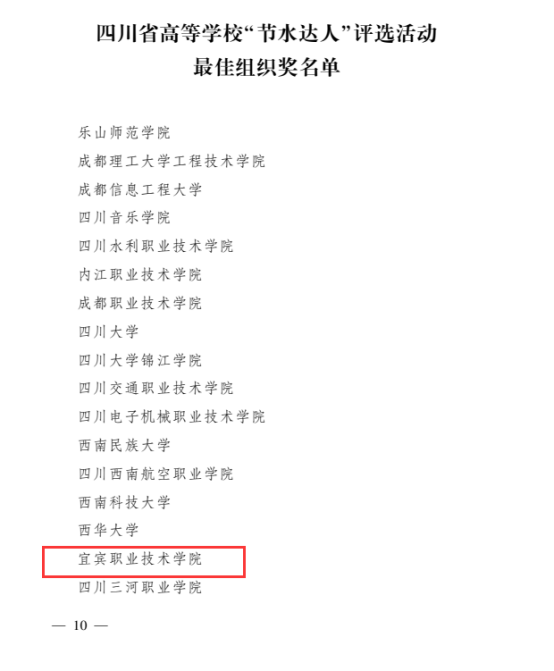 日前,四川省水利厅、教育厅2021年10月联合举办的四川省高等学校“节水达人”评选活动出炉,评出获奖作品一等奖1件、二等奖3件、三等奖5件、优秀奖30件,获奖学生122人,最佳组织奖学校17所。我院获最佳组织奖。