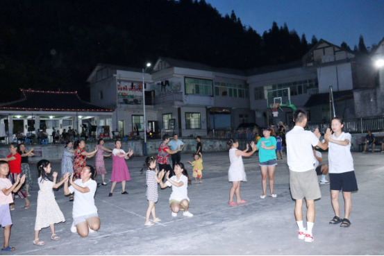 图4.服务队与仙峰乡群众共跳普法手势舞