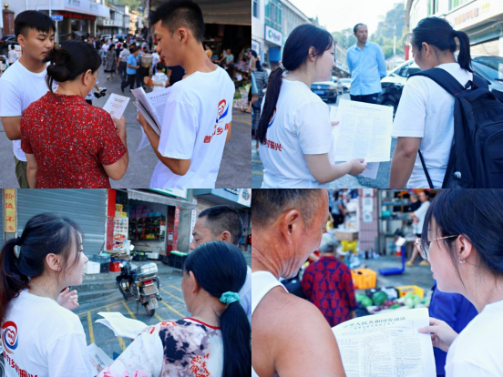 为扩大普法宣传覆盖面,加大普法宣传力度,服务队利用仙峰乡赶集的日子,走上街头向赶集的普通群众宣传法律知识,答疑解惑,发放普法宣传资料;随后,服务队队员深入人民群众,现场邀约大家共同学习《大手拉小手,普法一起走》普法手势舞,通过苗乡人民喜欢的歌舞方式,进一步推动普法意识入人心。