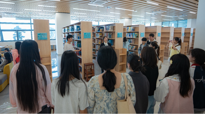 活动由图书与档案学生管理委员会专业讲解团队全程引导,精心设计的45分钟精品路线带领师生系统探秘图书馆六层智慧空间。从一楼的社科经典借阅区到六楼的航空科技专题书架,讲解员通过“空间叙事+学科导航”的创新形式,生动解读了各特色功能分区。