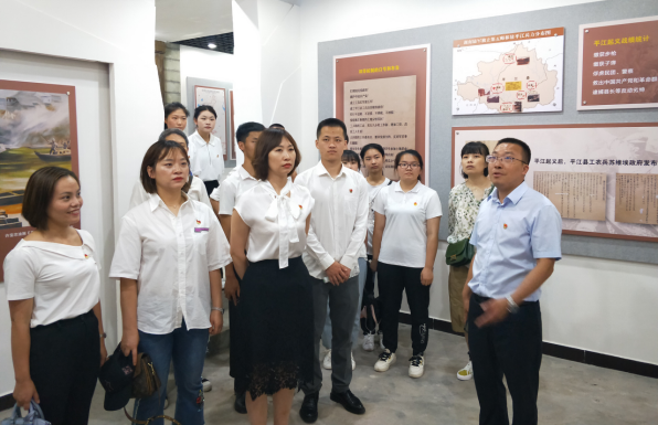 在邓萍故居,全体师生党员在邓萍事迹陈列馆展陈的图片、文字等资料中追寻红色印记,重温那段艰难的革命战争岁月,深刻认识到没有共产党就没有新中国,是中国共产党使“一盘散沙”的中国,变成了全世界组织化程度最高的国家,最有凝聚力、战斗力、创造力的国家,是中国共产党带领中国人民从百年苦难走向复兴。