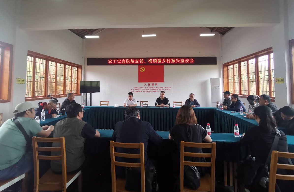 在余泽鸿故居会议室,农工党宜职院支部全体党员和梅硐镇党委副书记张志勇、梅硐镇常务副镇长周逵、泽鸿村党委书记蒋立新等一起座谈,就支部开展同心服务建设美丽乡村及打造红色旅游经典景区等相关事项进行了交流。