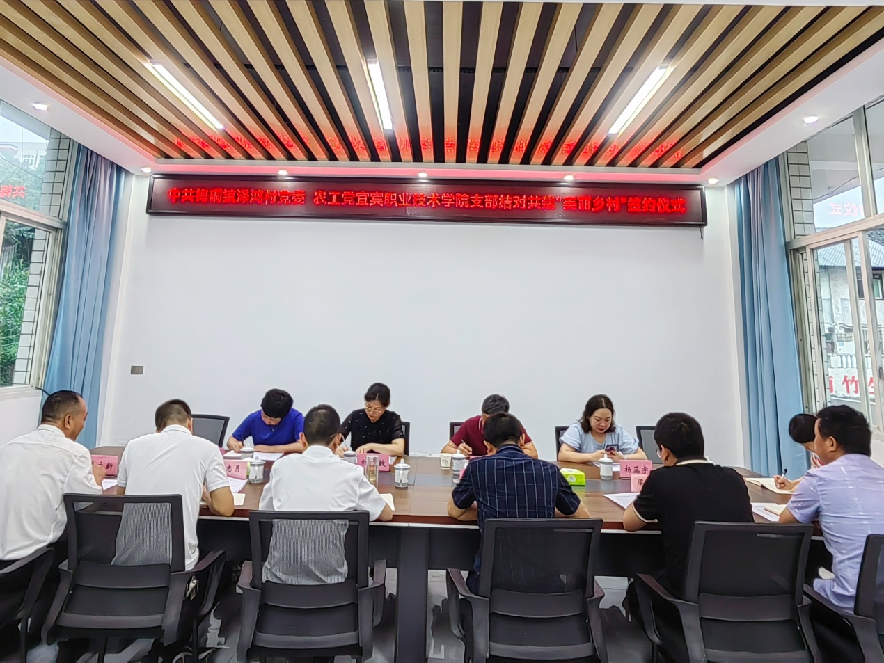 2022年6月23日,农工党宜宾职业技术学院支部与中共梅硐镇泽鸿村党委在长宁县梅硐镇政府会议室举行结对共建“美丽乡村”协议签订仪式,双方正式确立了互惠合作、共同进步的“结对共建”关系。农工党宜宾市委专职副主委刘敏参加签约仪式并发言。