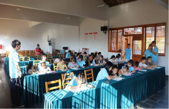 7月6日,“青马讲习”志愿服务队在“红领巾泽鸿学校”组织学生们观看《那年那兔那些事儿》红色动漫影片。