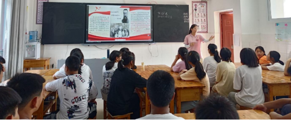 习近平总书记在党史学习教育动员大会上的重要讲话指出:“要抓好青少年学习教育,着力讲好党的故事、革命的故事、英雄的故事,厚植爱党、爱国、爱社会主义的情感,让红色基因、革命薪火代代传承。”队员朱成阳用朴素的语言、饱满的感情,将一个个红色故事娓娓道来,把一封封红色家书倾情诵读。随着朱成阳真挚地讲述,李大钊、江竹筠等革命先辈的英勇事迹慢慢浮现于眼前,让学生深切地感受到了共产党人的豪情壮志、英勇无畏,体会到了共产党人的坚定信仰、崇高理想。