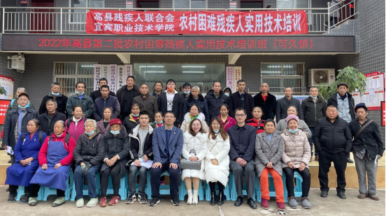 为助力乡村振兴,提高困难残疾人家庭的生活水平,12月2日上午九点,由高县残疾人联合会主办,宜宾职业技术学院电智学院承办的为期三天的2022年高县第二批农村困难残疾人实用技术培训班(可久镇)在高县可久镇人民政府便民服务中心顺利开班。高县残疾人联合会理事长刘庆春、宜宾职业技术学院继续教育学院培训科科长杨小琴、电智学院副院长彭永杰、53名农村困难残疾人学员和带班老师参加开班仪式。彭永杰主持开班仪式。