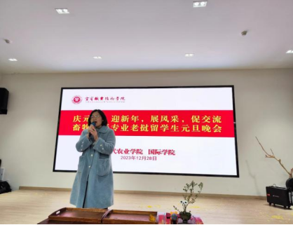 杨仕群在讲话中肯定了过去一年畜牧兽医专业老挝留学生取得的成绩与进步,表达了对老挝留学生新年的美好祝愿。