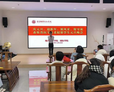 为增进中老友谊,传播中华优秀传统文化,提高老挝留学生的归属感和融入感,12月28日,现代农业学院在振兴园茶文化传播中心举办了畜牧兽医专业老挝留学生元旦晚会。现代农业学院党总支副书记杨仕群、副院长罗学平出席,2022级畜牧兽医专业老挝籍留学生张彭建主持。