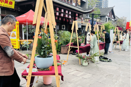近日,宜宾职业技术学院文旅产业创新创业孵化中心传统插花工作室受邀前往南溪古街,参加“和美南溪·礼乐花朝”——宜宾市南溪区2024年古街景区第三届花朝节暨十二花神评选活动。作为国家级非遗项目,以花枝为材料的传统插花艺术展示了中华传统生活艺术的独特魅力,为古街花朝节增添了一抹亮色。