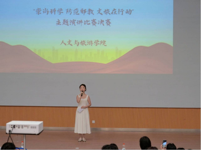 按照《关于开展第三届川渝高校反邪教警示宣传教育暨反邪教科普知识网络有奖竞答活动的通知》,结合我院实际,持续提升师生识别防范和抵御反制邪教侵蚀的意识和能力,筑牢反邪教防线,构建和谐平安文明校园,人文与旅游学院举办了“崇尚科学 防范邪教 文旅在行动”的主题演讲比赛。
