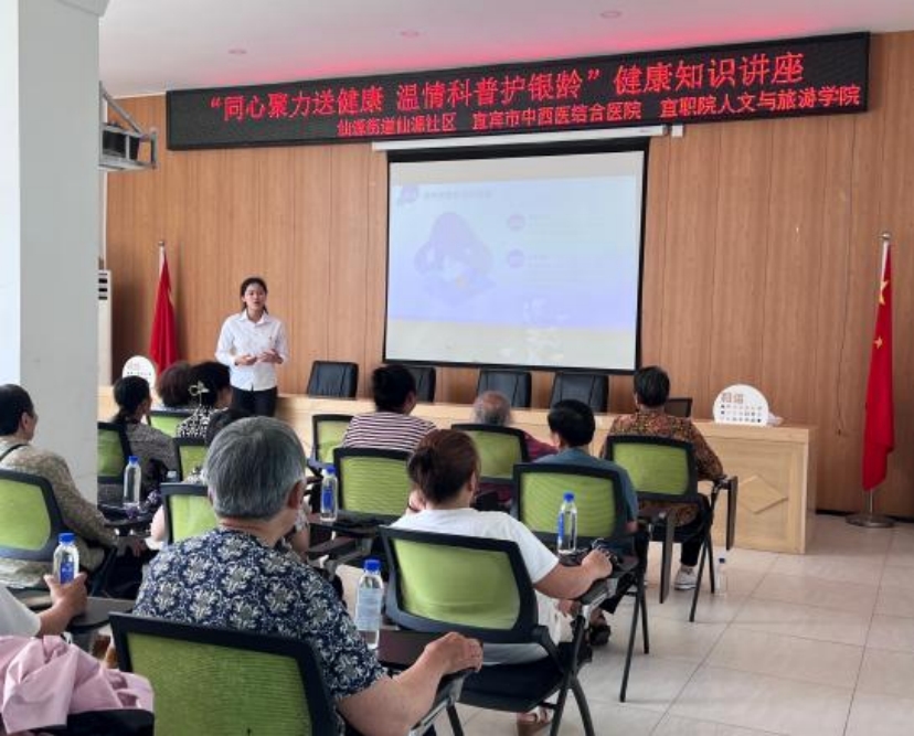 教育引导翼:注重通过主题团日活动加强对大学生的思想引领。结合时事热点和学院特色,策划了“同心聚力送健康 温情科普护银龄”主题团日活动,向社区老年人群科普健康饮食、疾病预防以及居家环境安全知识。