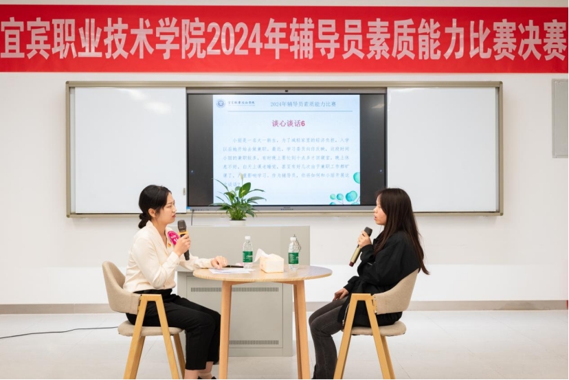 在谈心谈话环节,辅导员们围绕学生思想价值引领、困难学生帮扶、寝室人际纠纷、职业发展与就业指导、大学生恋爱问题等主题,与学生进行一对一、面对面的情景模拟,辅导员们在娴熟的理论运用和谈话技巧中充分挖掘问题本质、精准把握关键信息、厘清解决思路,充分展现了作为青年大学生知心人、热心人、引路人的职责使命和素质能力。