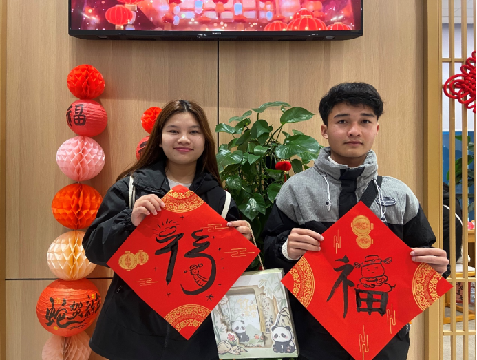 1月17日下午,由市大学城党委主办、市委人才和大学工作局承办、市文学艺术界联合会协办的“华韵新春 共享华章——留学生欢度中国年国风庙会”在宜宾人才之家举行,我院十名老挝留学生代表在素质教育学院教师带领下,与宜宾大学城各高校来自世界各地的留学生代表欢聚一堂,感受中华优秀传统文化的独特魅力。