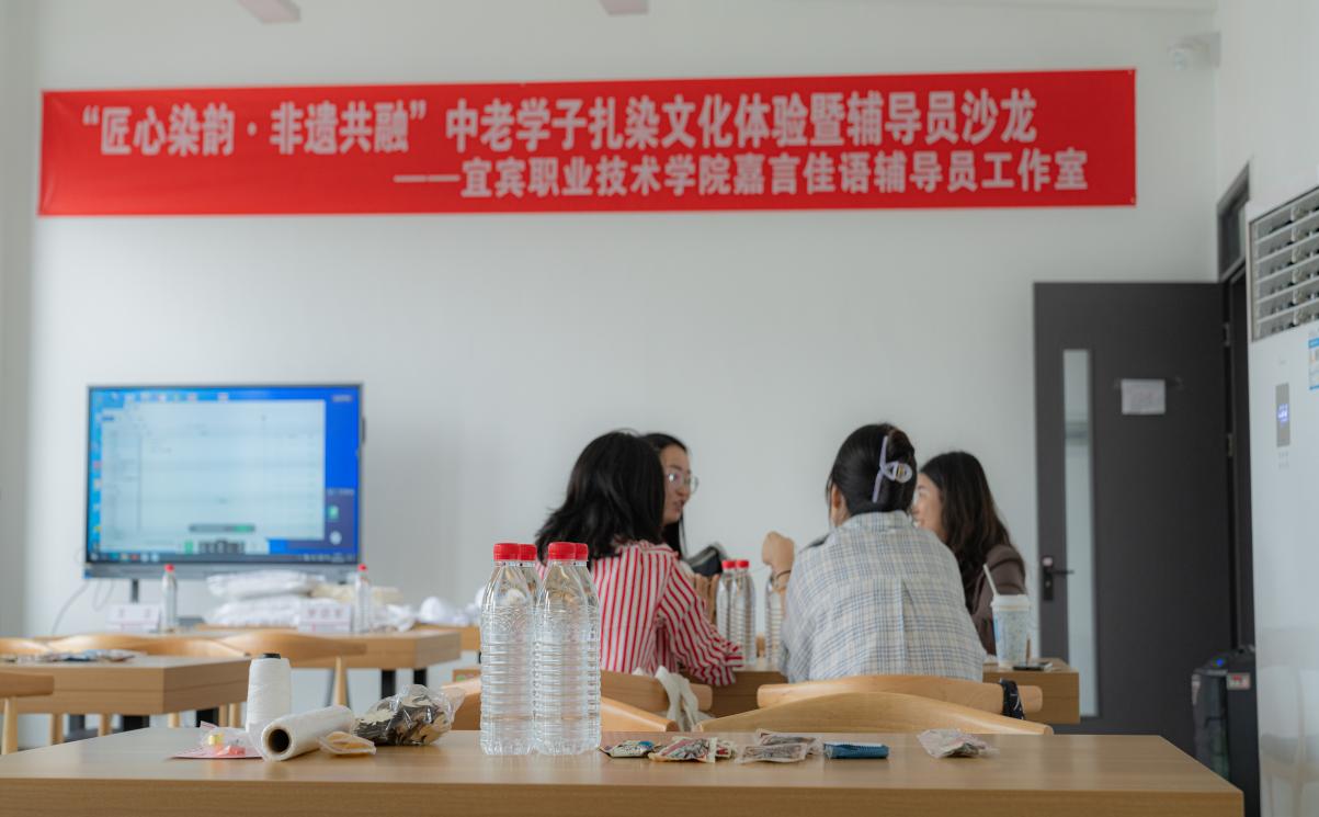 为促进中老文化交流与非物质文化遗产(非遗)技艺传承,宜宾职业技术学院“嘉言佳语”辅导员工作室于4月22日下午成功举办“匠心染韵·非遗共融”辅导员沙龙暨扎染文化体验活动。来自老挝的7名留学生与中国师生齐聚一堂,通过沉浸式体验国家级非遗扎染技艺,同探文化之美,共促文明互鉴。