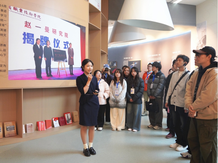在我校党委宣传统战部的精心统筹安排下,宜宾学院师生有序参观了“树人中心”思政教育基地。我校学生讲解团以详实且生动的方式进行讲解与展示,使宜宾学院师生得以深入了解我校在文化育人方面的创新性举措,以及在文化产品开发与推广工作中所取得的显著成果。场馆内丰富多样的实物陈列、影像资料以及互动体验环节,给来访师生留下了极为深刻的印象,有力拓宽了大家对高职院校文化建设的认知视野。