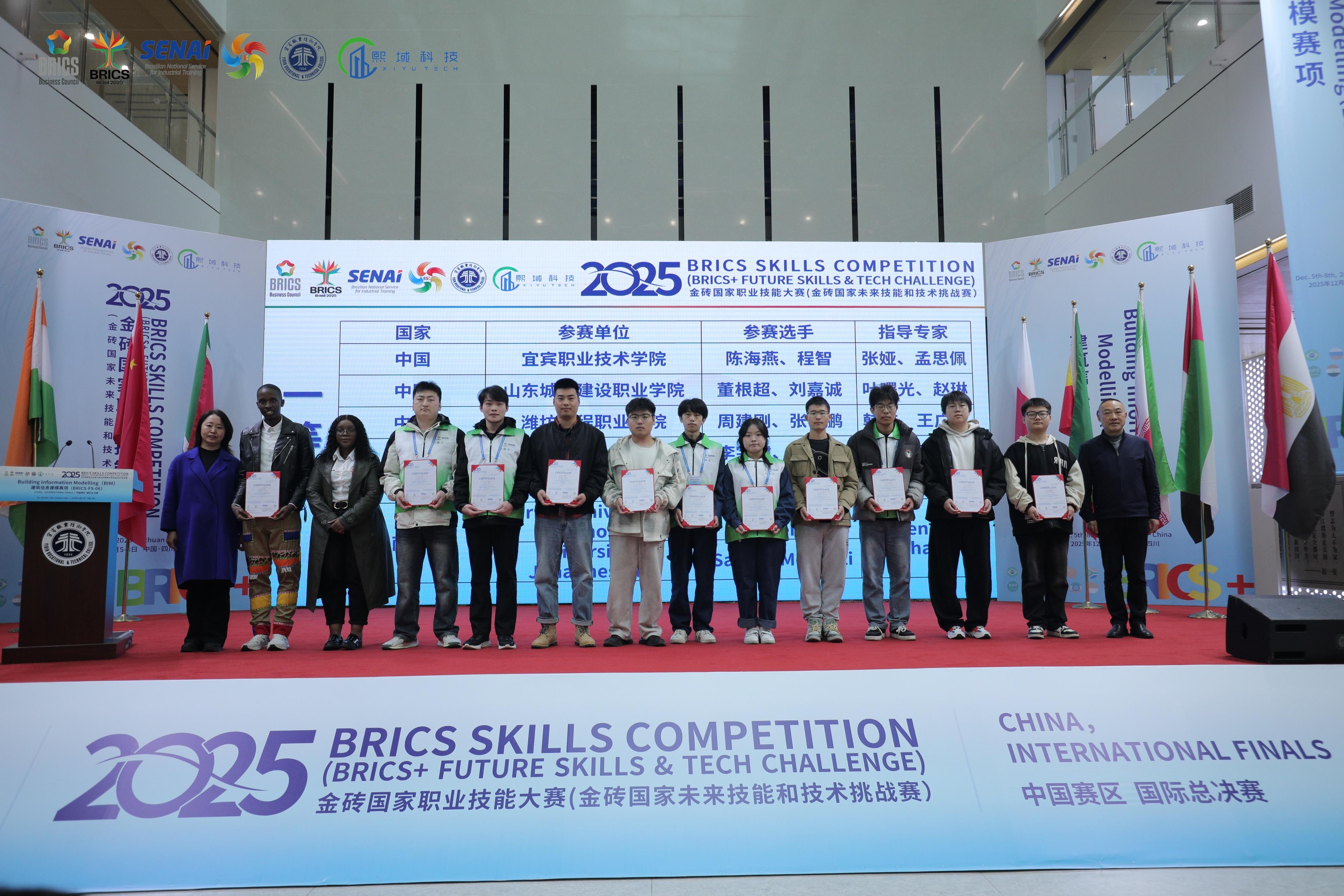 12月5日至8日,2025金砖国家职业技能大赛(金砖国家未来技能和技术挑战赛)建筑信息建模赛项国际总决赛在我校举办。建筑与环境学院选派的参赛代表队荣获该赛项国际总决赛一等奖与国际金奖两项最高荣誉。