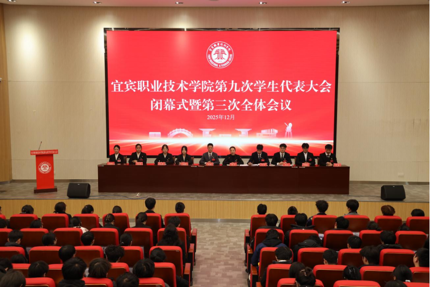 大会审议通过了《宜宾职业技术学院第九次学生代表大会工作报告的决议》等决议案。选举产生了宜宾职业技术学院第九届常任代表和学生会主席团成员。