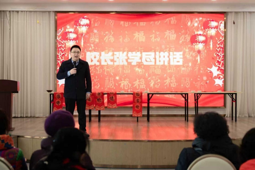 张学尽在致辞中全面回顾了学校2025年在各项工作中取得的显著成效,对退休教职工们为学校建设发展奠定的坚实基础、作出的重要贡献致以崇高敬意与衷心感谢,并为老同志们送上新春的美好祝愿,叮嘱大家保重身体、安享幸福晚年。