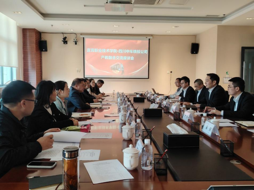 随后,校企双方在中车铁投317会议室举行产教融合交流会。会上,中车铁投公司总经理张俊林介绍了企业发展历程、产业布局及未来规划,特别强调了企业在智能微电网、氢能应用、无人机巡检等新兴方向的技术突破。汽车与轨道交通学院相关负责人则围绕该学院专业设置、人才培养模式及产教融合实践进行了详细介绍。双方就人才需求、课程共建、实习实训、科研合作等议题展开深入交流,达成了多项合作共识。