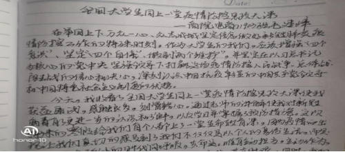 本次“全国大学生同上一堂疫情防控思政大课”线上直播活动在我院师生中引起巨大反响和强烈共鸣,广大师生深受感染和鼓舞,自发在线上展开热烈讨论。大家纷纷表示,此次线上思政大课意义重大、讲解精彩、触动心灵、正能量满满,观看学习后思想灵魂受到洗礼,收获颇多。