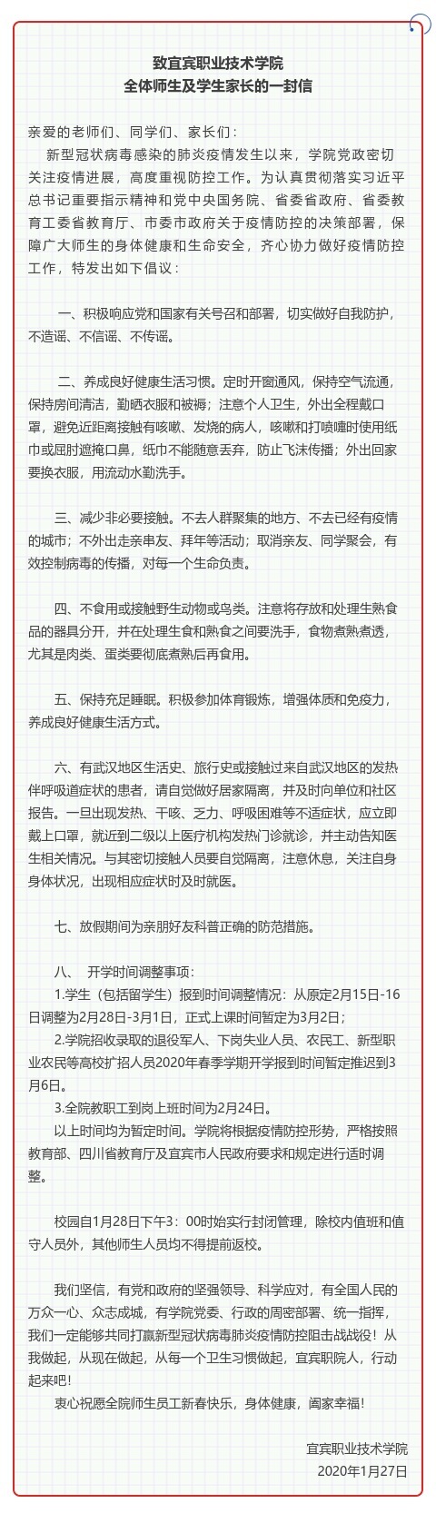 上一条:川疾发〔2020〕10号环卫 关于印发《四川省家庭“新型冠状病毒感染的肺炎 下一条:关于推迟学院2020年春季开学时间的通知