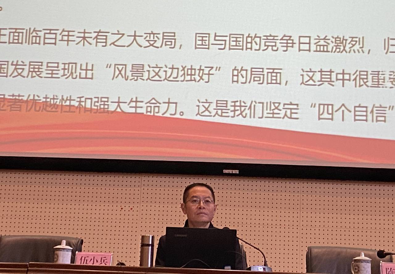 伍小兵院长赴长宁县宣讲十九届四中全会精神。宣讲会上,伍小兵院长以《学习贯彻党的十九届四中全会精神》为题,紧紧围绕学习贯彻习近平新时代中国特色社会主义思想,从全会审议通过的《决定》的时代背景、形成过程和框架结构,中国特色社会主义制度和国家治理体系的显著优势,准确把握总体要求、总体目标和重点任务,加强党的领导、确保目标任务全面落实到位等四个方面,进行了深刻阐释和全面解读。宣讲报告系统全面、内容丰富、深刻透彻,具有很强的理论性、思想性、指导性。