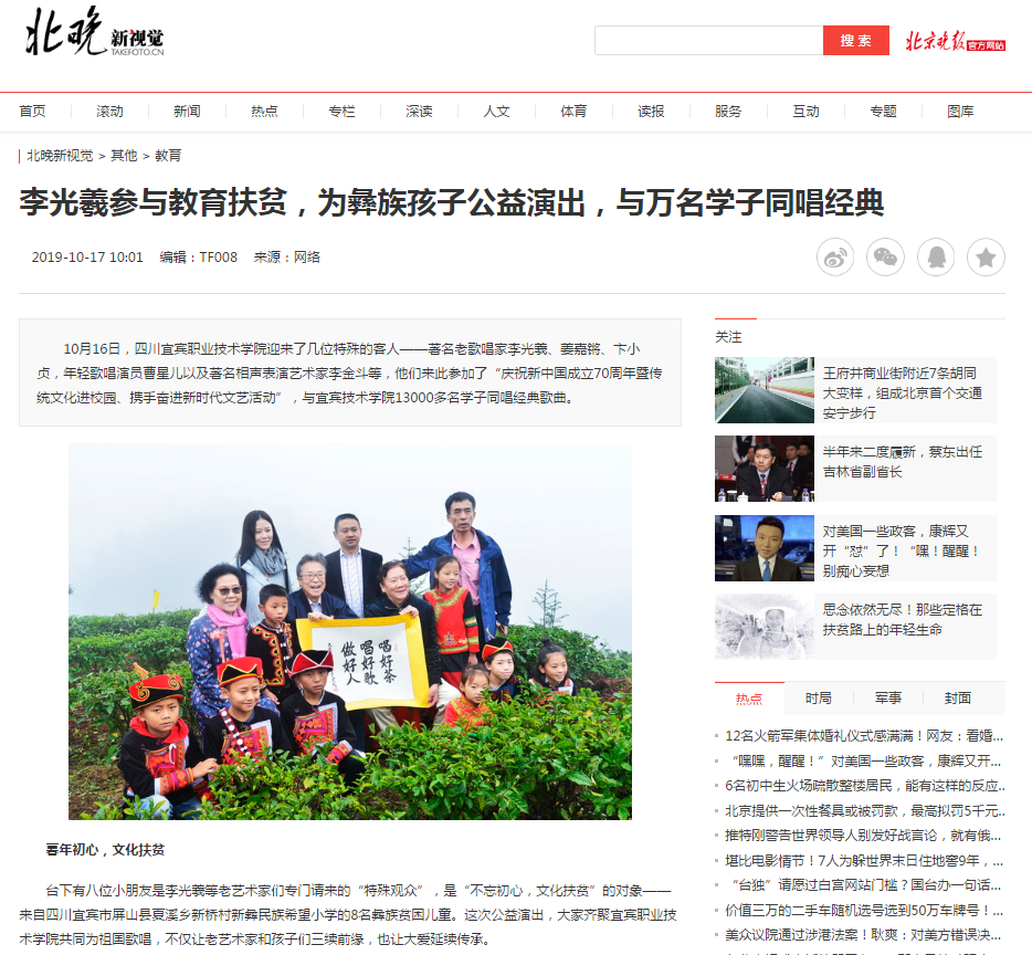 上一条:传统文化进校园 老艺术家李光羲献唱(宜宾新闻网) 下一条:李光羲与宜宾职业技术学院为彝族孩子公益演出(北京晚报)