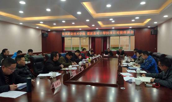 一是对接项目达共识。闫景丽副院长一行与县委副书记李大鹏,县委组织部、县委宣传部、帮扶协调办、教科体局、农业农村局、上田坝乡、马湖乡、马史洛村、唐家山村及学院派驻干部在溪洛渡大酒店五楼会议室进行了座谈。闫景丽副院长首先总结2018年帮扶工作,学院对口帮扶完成情况,与会人员对学院2018年帮扶雷波县上田坝乡马史洛村、马湖乡唐家山村工作落实充分认可。闫景丽副院长重点介绍学院2019年帮扶计划及支部共建、人才培育、环境整治、智志双扶及“一对一”帮扶等项目,2019年是决战决胜脱贫攻坚的关键年,学院党委明确将举全院之力持续在职教帮扶工作中聚焦发力,进一步加强与乡村两委对接与联系、进一步建立互联共建党建引领机制、进一步在产业帮扶成效上动脑筋想办法。县、乡、村参会人员分别对学院2019年帮扶项目清单如何落地表态,最后李大鹏副书记介绍了雷波县脱贫攻坚工作总体情况,充分肯定宜宾职业技术学院帮扶项目清单“讲政治、务实效”,要求参会部门加强联系与项目参与,尽快落地实施,从3月-10月按月分步推进。
