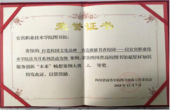 本次大赛以“想象创造未来”为主题,来自全省80余所高校的馆员参赛。大赛分预赛和决赛两个阶段,比赛中各高职高专院校和本科院校同组比赛。经专家评审,从89个案例中共评选出36个案例进入大赛决赛现场展示。我院图书馆提交的“打造校园文化品牌营造浓郁书香校园——以宜宾职业技术学院读书月系列活动为例”从众多案例中脱颖而出进晋决赛。经过激烈角逐,最终取得三等奖的好成绩。这是我院第一次与本科院校同台角逐奖项,我们将努力学习,再创佳绩。(图信中心供稿)