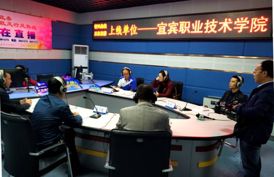 11月1日上午,学院院长伍小兵同志带队率教务处、学生处保卫处团委、招生就业处、计财处、继续教育部、人事处、行政办公室、宣传统战部、监审处等部门相关人员到宜宾市广播电视中心“阳光政务·政风行风热线”直播间与广大听众和网民朋友进行沟通交流。本次直播以“服务学生成长成才、服务地方经济发展”为主题,主要就学院教学管理、专升本、学生管理、学生资助、安全管理、招生政策、就业情况、收费政策、费用结算、继续教育、人才引进、教师招聘、规范办学、脱贫攻坚等方面问题开展咨询,充分听取听众意见和建议。