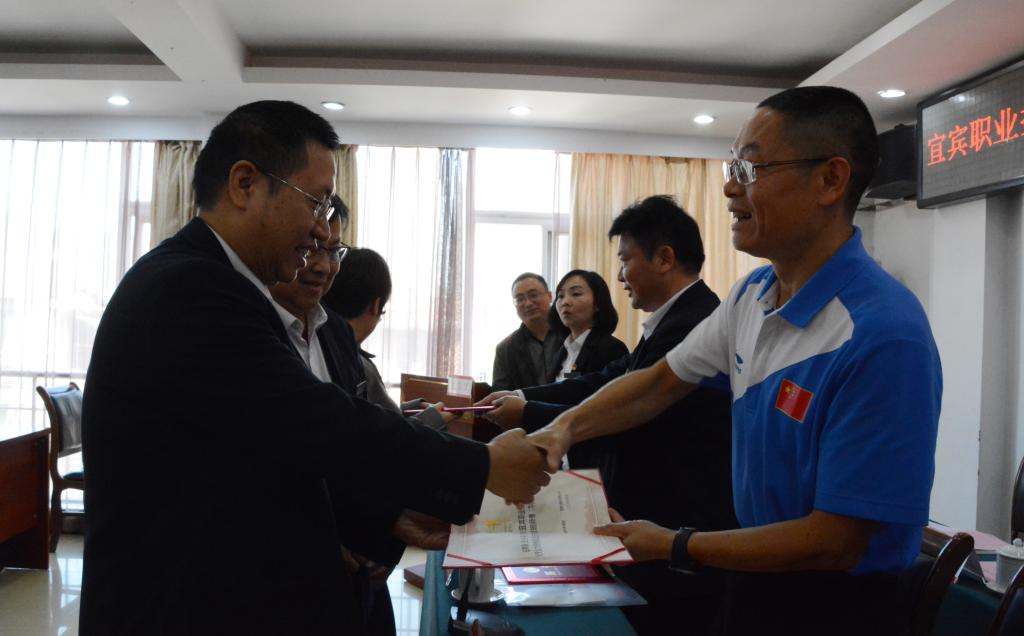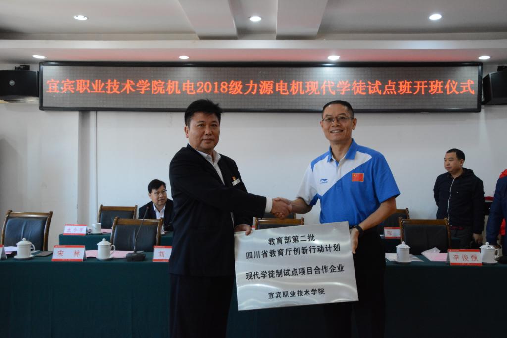 10月31日,宜宾职业技术学院机电2018级力源电机现代学徒试点班开班仪式、三方协议签订暨学徒拜师仪式在我院科苑宾馆三楼会议室举行。本次会的主题是“弘扬中华师徒文化,践行学徒工匠精神”,参加会议的领导有学院院长伍小兵、副院长张毅、教务处和五粮液技术学院主要领导、机电教学中心部分教师,四川宜宾力源电机股份有限责任公司总经理刘力、总经理助理宋林等企业领导和师傅代表,以及18级力源电机班全体21名学生。本次学徒开班仪式由张毅副院长主持。