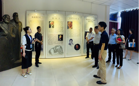 马教院院长刘吉梅、副院长夏谦对思政课校内实践教学8个展厅的实践教学情况介绍