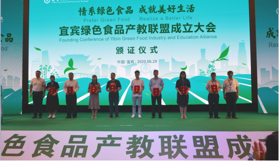 6月29日,以“情系绿色食品,成就美好生活”为主题的“宜宾绿色食品产教联盟”成立大会在宜宾市城市名人酒店名人厅召开。由宜宾职业技术学院、10所中职学校、30家宜宾龙头企业的嘉宾、代表共126人参加了成立大会。宜宾市农业农村局副局长肖平、宜宾市教育和体育局职成教科科长江波、宜宾市工业和军民融合局食品工业科科长郝玉柱,宜宾学院川茶学院院长赵先明教授、四川轻化工大学周健教授、宜宾职业技术学院党委副书记陈林出席会议。会议由宜宾职业技术学院副院长周黎军主持。