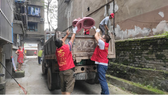 齿轮厂小区都属老旧小区,长期存在环境脏、乱、差问题。党员志愿者们拿起扫帚、铁锹、锄头等劳动工具,发扬不怕脏、不怕累的优良作风和团结协作的精神,主要清理小区内垃圾死角,楼道杂物、绿化带中的杂物及藤条,全身心投入到清理活动中。