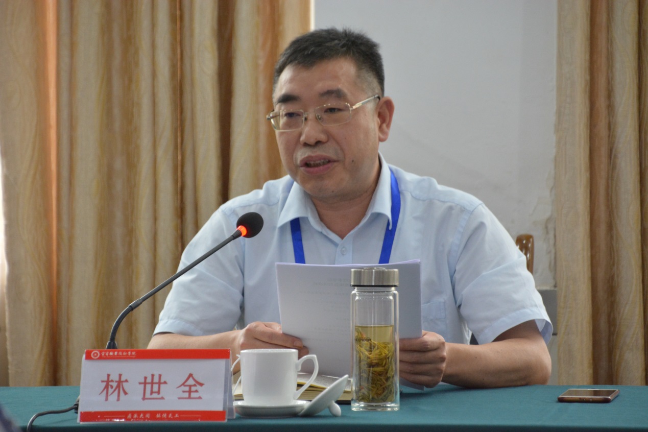 林书记就做什么样的人,成什么样的业,布什么样的局,建什么样的校四个方面同与会者进行了交流。做什么样的人?我是谁,从何处来,向何处去,思考个人的人生轨迹,将个人的人生轨迹与教育相结合,要求教师要有教育情怀,能否淡泊名利,受得了委屈,指出做教师要内心淡定,锻炼自己强大的内心,坚守师德师风;成什么样的业?作为教师要把教育作为人生的追求,将自己的职业理想融入中国职业教育现代化的宏伟目标,将自己的辛勤付出与成就学生今后的职业人生相联系,为实现中华民族伟大复兴梦而不懈奋斗,在平凡的岗位上做出不平凡的业绩;布什么样的局?他谈到学院发展大局、外部环境、职业教育及宜宾格局对学院和个人发展的关系,指出学校格局要高,教师个人格局必须提高;建什么样的校?他介绍了学校排位和获奖情况,人才培养和学校建设,团队和科研,社会服务相结合,指出学院高质量发展要提前谋划布局,希望大家为学院高质量发展建言献策,做学院高质量发展的践行者和贡献者。