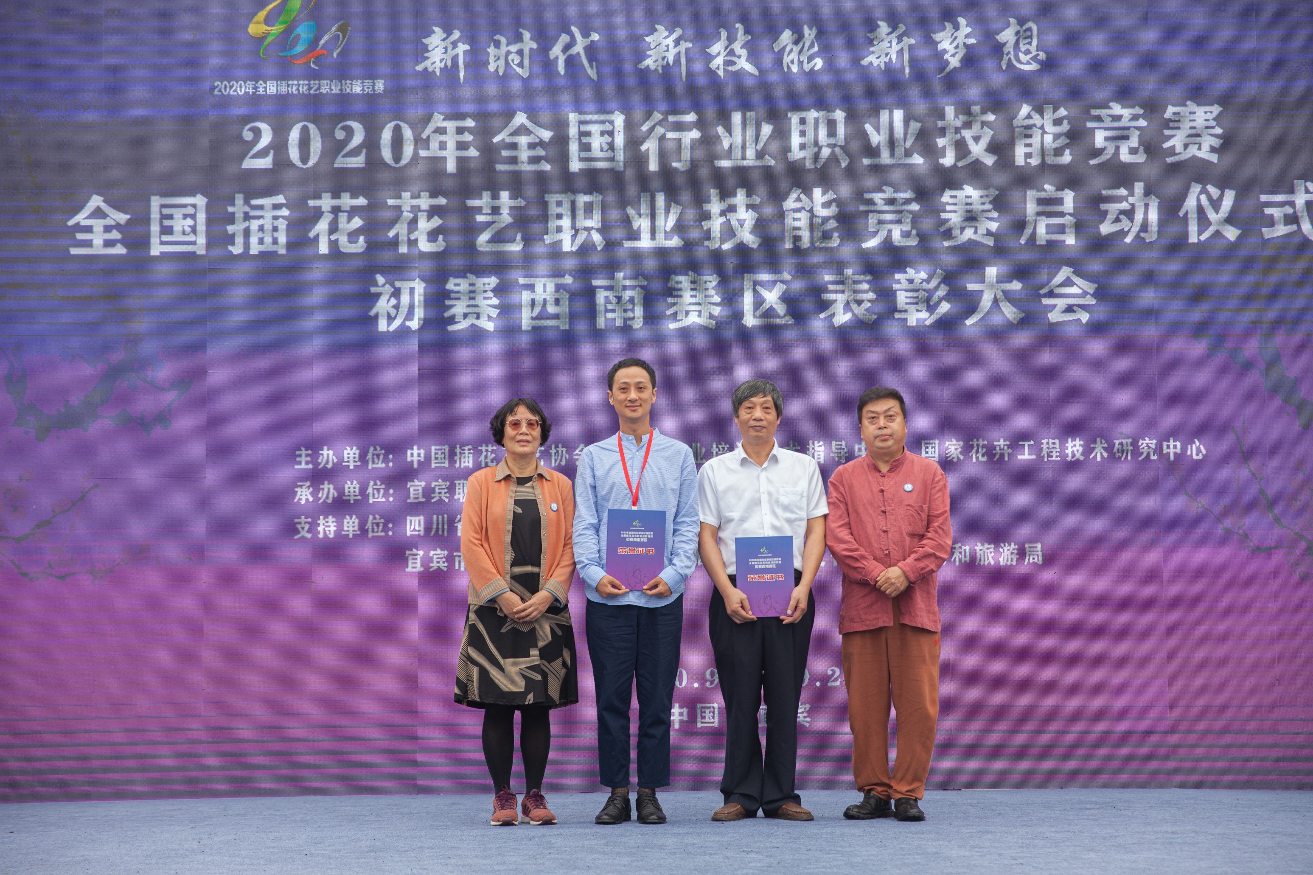 大会首先举行了颁奖仪式。先由与会嘉宾和学院领导分别给学生组和职工组获得一二三等奖的选手颁发获奖证书;接着进行团体表彰,由几名裁判专家分别给云南千寻花艺空间、凤池荷雨花艺培训学校、成都农业科技职业学院、重庆花艺设计师协会、成都纺织高等专科学校、重庆水利电力职业技术学院、宜宾职业技术学院文创与旅游学院颁发大赛优秀组织奖;再由中国插花花艺协会副会长唐秋子、中国插花花艺协会秘书长薛立新为宜宾职业技术学院、四川省花卉协会插花花艺分会颁发大赛特殊贡献奖。