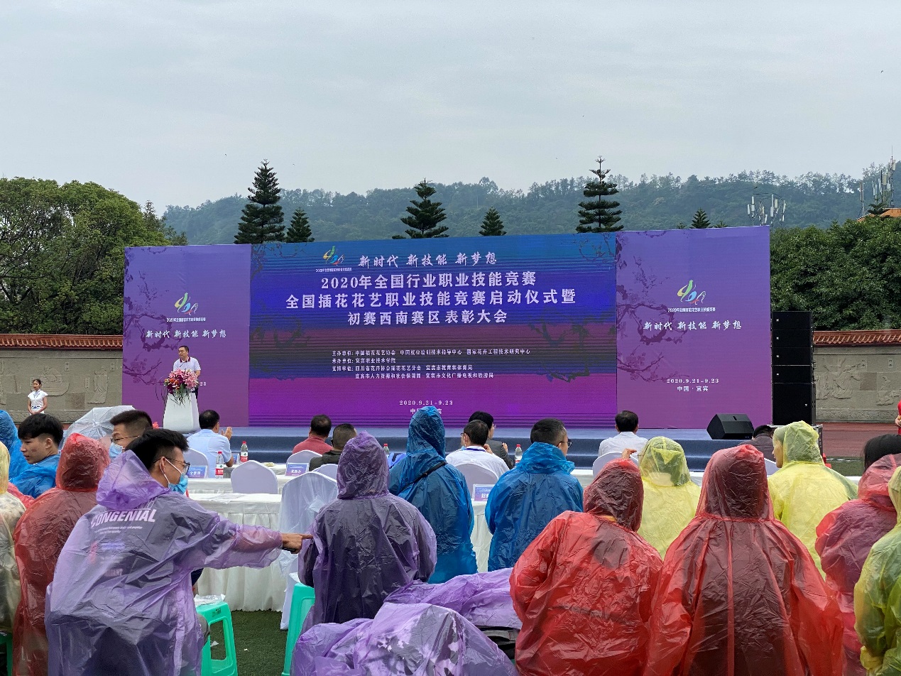 细雨霏霏,沾衣不湿;天高地迥,气净心爽。2020年9月23日上午9时,2020年全国行业职业技能竞赛插花花艺职业技能竞赛西南赛区初赛在宜宾职业技术学院A1运动场正式落下帷幕。