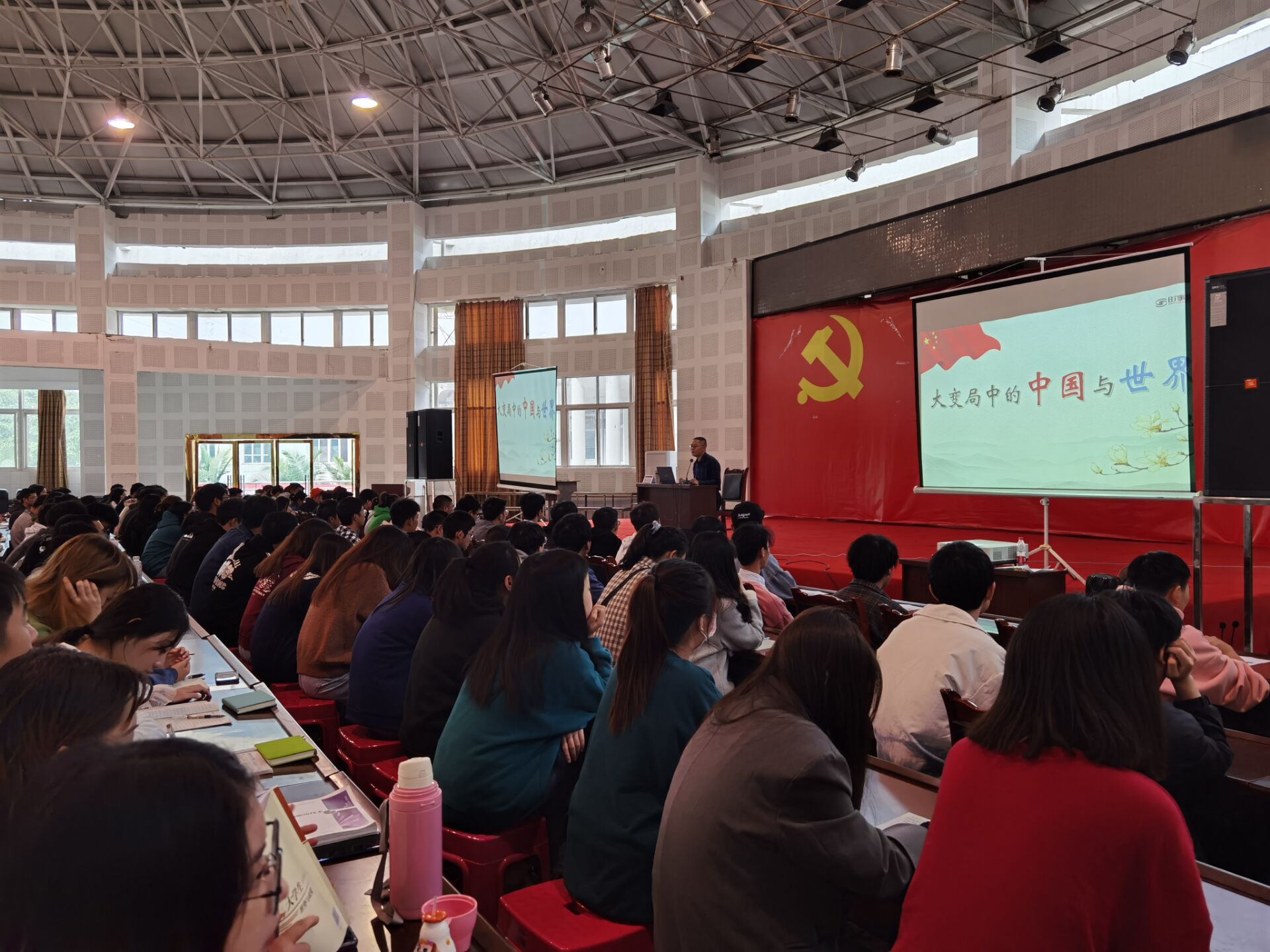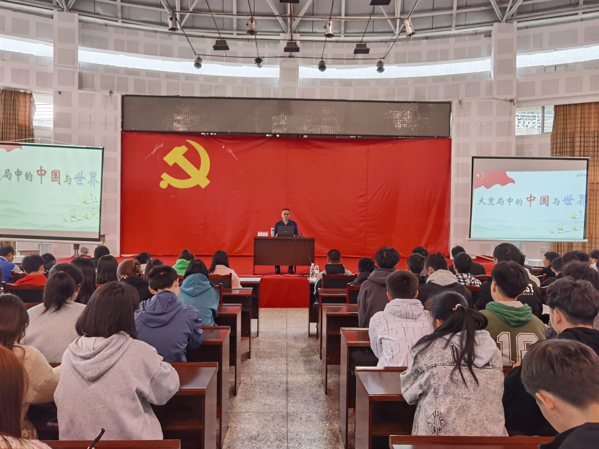 11月4日下午3时,在一阵热烈的掌声中,由宣传部牵头主办的学院形势政策教育系列讲座在B区学生活动中心拉开序幕。学院党委副书记、院长伍小兵为在场的380多名学生,做了一场以“大变局中的中国与世界”为题的形势政策教育讲座。