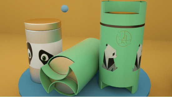 将可爱的大熊猫平面图简洁、明了的围绕在木制竹筒上