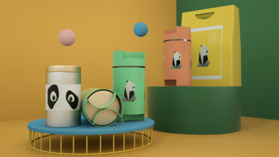 运用线条化的形式将泡茶时的飘出的“云烟”当作九寨沟的仙气