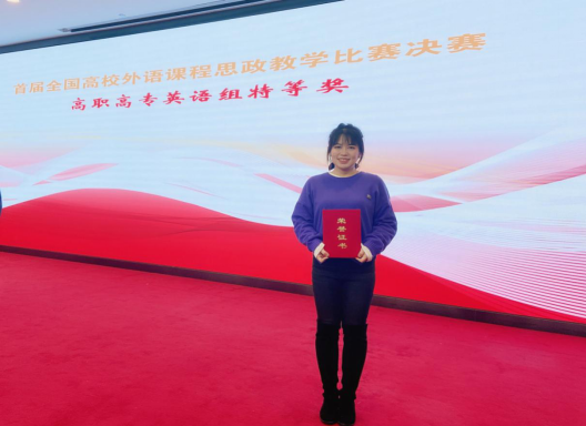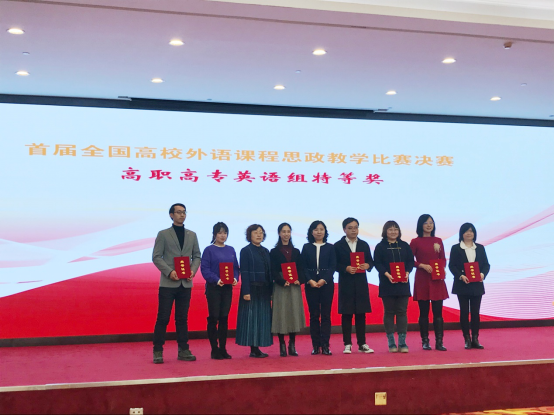 全国首届外语课程思政教学比赛决赛于2020年12月18日至20日在北京举行,我院英语教师刘林林、何雨露、肖扬、管文娟、罗显敏组成的教学团队荣获高职高专英语组特等奖。本次比赛,竞争异常激烈,她们的教学设计作品,从初赛771所院校提交的1500多件参赛作品中脱颖而出,跻身入总决赛70件作品之一,其中高职高专英语组仅有20件作品进入决赛。