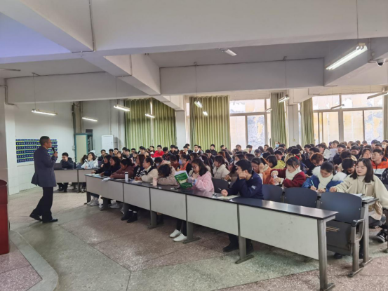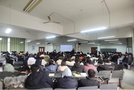 12月29日上午10:20,在一阵热烈的掌声中,由宣传部牵头主办的学院“学习贯彻党的十九届五中全会精神宣讲报告会”第二场在A1区教学楼1418教室正式开讲,院长伍小兵为在场的170多名师生做了一场精彩的专题宣讲报告。