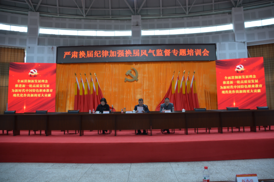 1月11日下午16:00-17:00,中国共产党宜宾职业技术学院第三次代表大会在我院学生活动中心举行“严肃换届纪律、加强换届风气监督专题培训会”。学院党委书记林世全,党委副书记、院长伍小兵,党委副书记、纪委书记陈林,党委委员、副院长古文伟、闫景丽、江仁朝、王志刚,党委委员、组织部部长陈三军,全体代表102人、大会列席人员23人参会,会议由林世全主持。