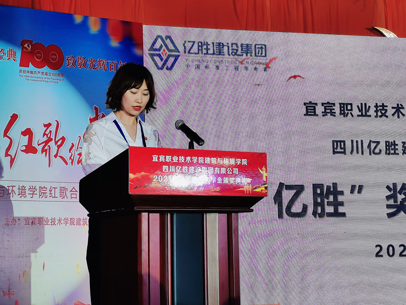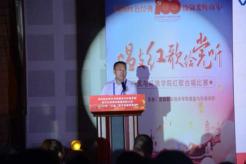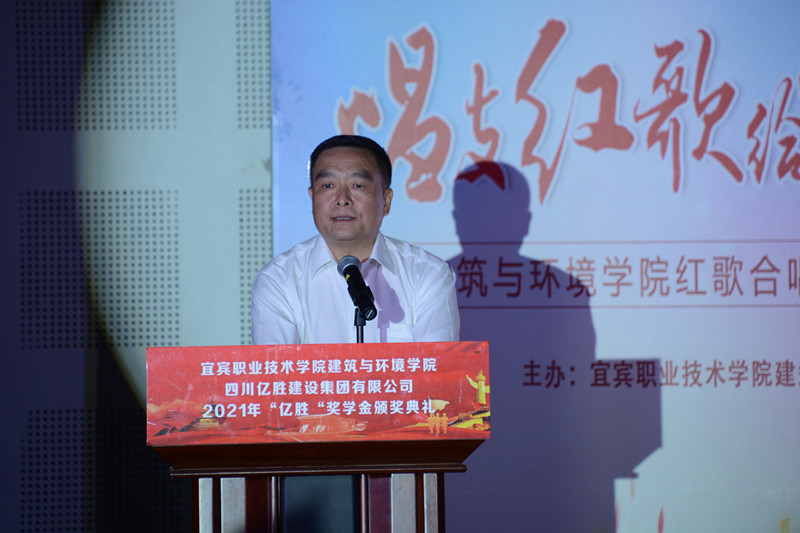 颁奖典礼上建环学院党总支书记温燕萌介绍参加活动嘉宾。他向一直以来支持学院发展的四川亿胜建设集团有限公司(以下简称“亿胜集团”)表示感谢和敬意。此次奖学金由我院校企合作单位亿胜集团提供,旨在鼓励先进、奖优促学,激励同学们要脚踏实地、敢于创新、实现梦想并回馈社会。