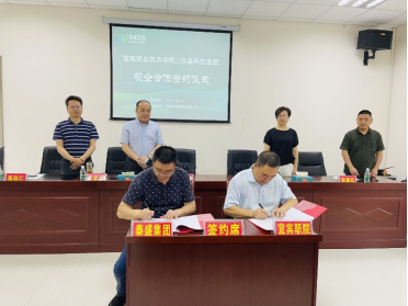 随后,在我院化工专业40名实习同学和企业员工的见证下举行签约仪式。出席签约仪式的有:泰盛集团副总裁甘影川、泸州永丰四川天竹总经理高焱仁、泰盛集团人力资源副部长石井刚、泸州永丰副总经理牟登云、集团人事行政经理吕波、泸州永丰人事行政经理廖润生、四川天竹人事行政经理唐科。签约仪式由泰盛集团人力资源部副部长石井刚主持。