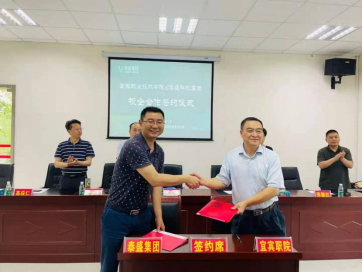 2021年6月23日下午,学院党委委员、副院长江仁朝,材化学院院长沈红,智能制造学院副书记张德红、智能制造学院综合办主任郭超、材化学院轻化工教研室主任李波、轻化工教研室教师姚霞等一行六人,前往泸州永丰浆纸有限责任公司(泰盛科技集团下属子公司),参加与泰盛科技集团的校企合作签约仪式。