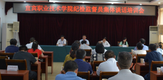 2021年7月9日上午,学院纪委在科苑宾馆三楼会议室组织召开宜宾职业技术学院纪检监督员集体谈话培训会。学院党委书记林世全同志出席会议并开展集体谈话培训。学院党委常委宣传统战部部长叶茜同志、纪委委员、纪检监督员、各二级学院党总支书记、部门负责人共42人参加培训。培训会由学院党委副书记、纪委书记陈林同志主持。